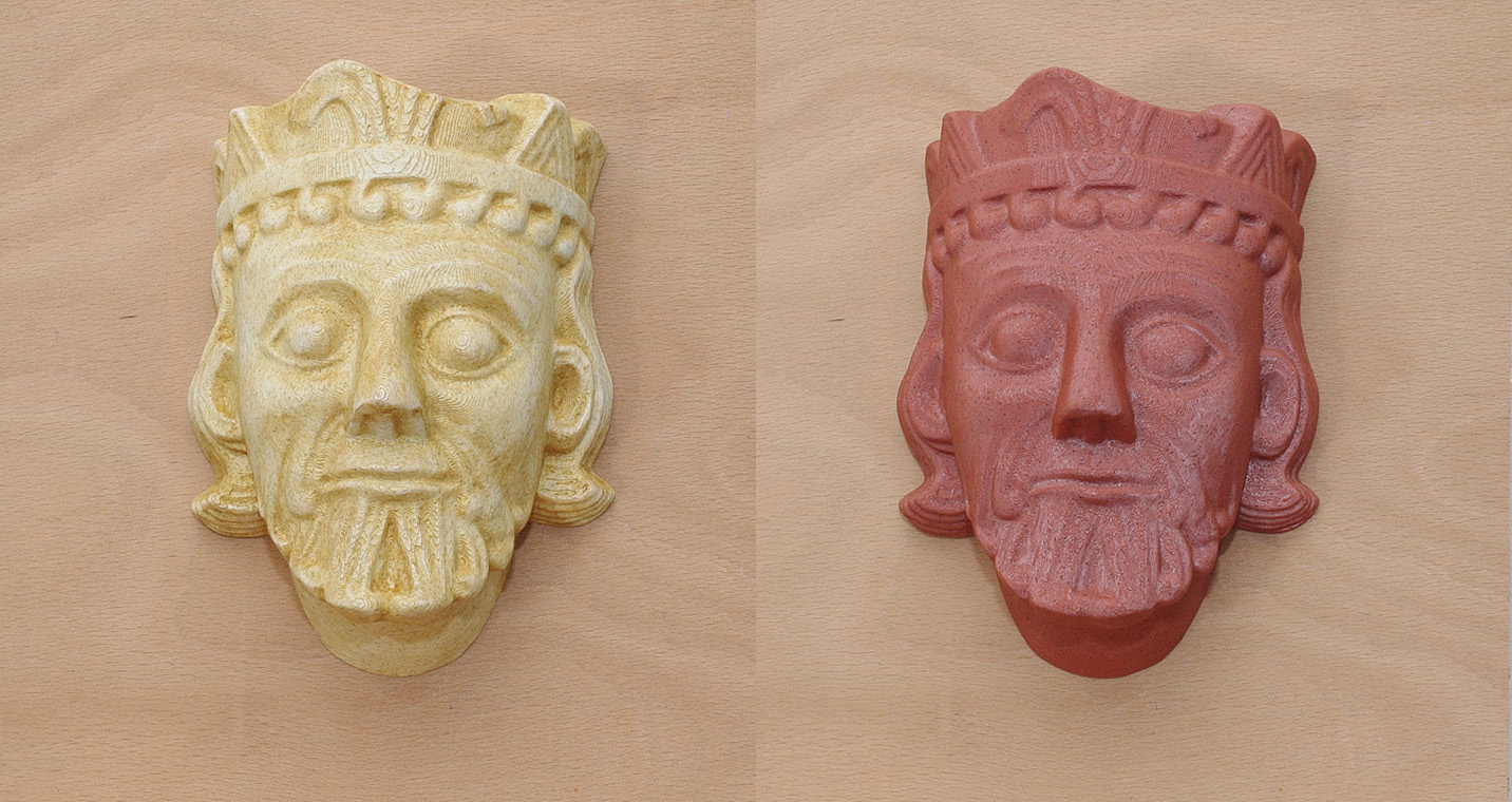 In 1996, I modelled a range of wall-mounted heads in Chavant wax by working from my own photos of historical artefacts in museums or from books. I cast them in Acrylic Plaster Polymer using rubber moulds. These new versions are 3D printed with PLA filament*. They can be coloured using wood stains, but if painted a spray acrylic primer must be used first.