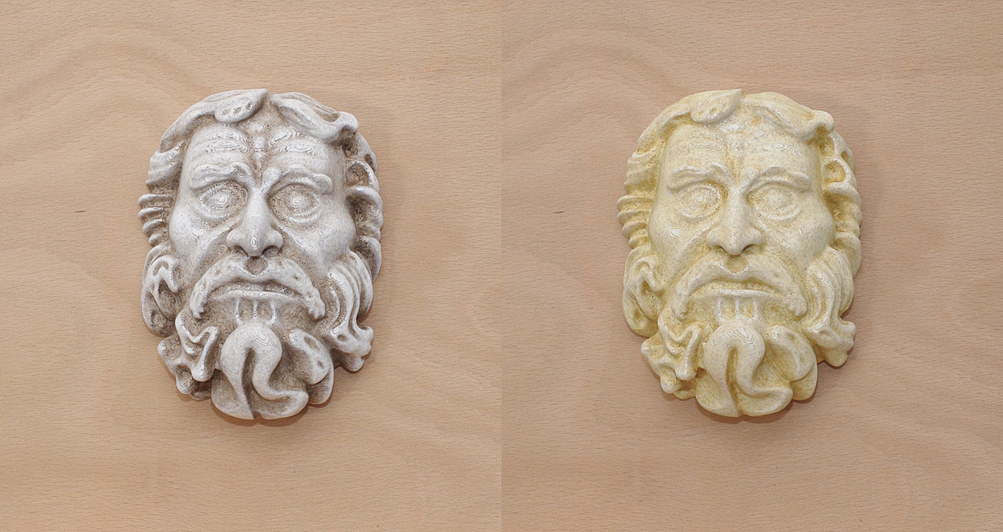 In 1996, I modelled a range of wall-mounted heads in Chavant wax by working from my own photos of historical artefacts in museums or from books. I cast them in Acrylic Plaster Polymer using rubber moulds. These new versions are 3D printed with PLA filament*. They can be coloured using wood stains, but if painted a spray acrylic primer must be used first.